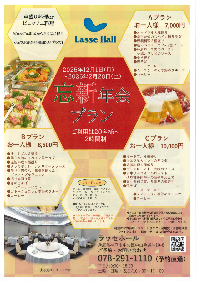 B・Cプラン上記Aプランに、日本酒・梅酒・レモンチューハイがプラスされます。
